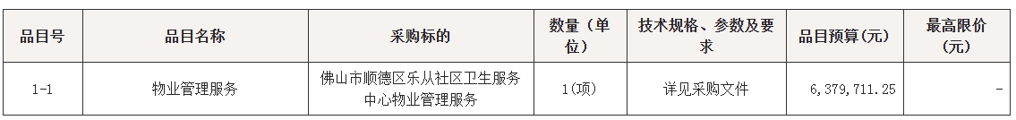 > 佛山市顺德区乐从社区卫生服务中心物业管理服务社会化采购项目招标公告