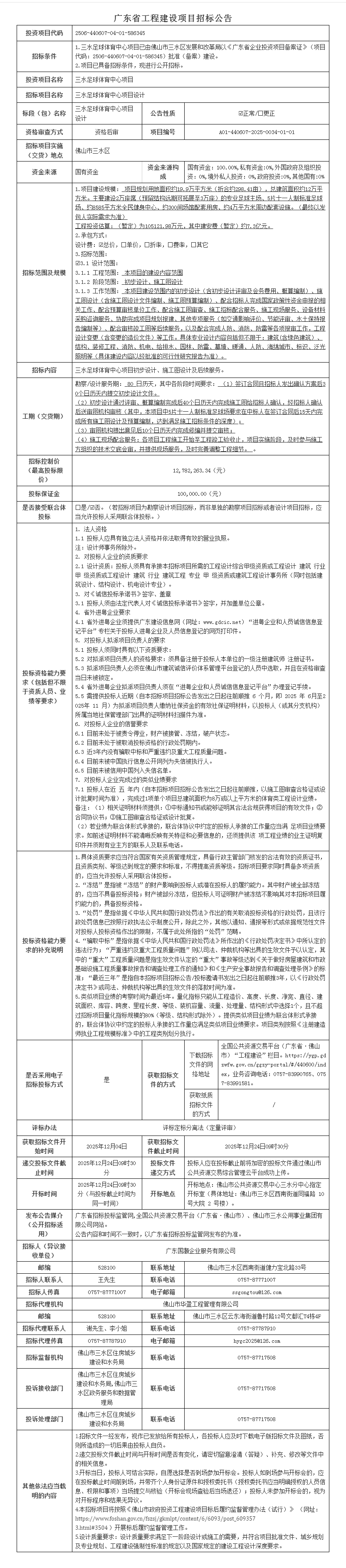 三水足球体育中心项目设计招标公告