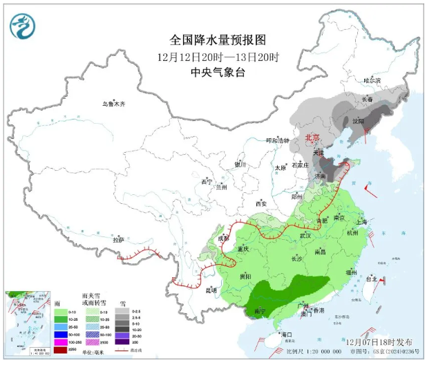 寒潮到来的同时,11日至13日中东部将出现大范围雨雪天气,这将是近一个月以来最大规模的雨雪天气。
