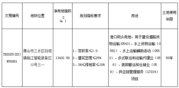 五、有意参与竞买者可于2025年12月4日后登录网上交易系统下载TD2025(SS)WP0083地块的《佛山市三水区国有建设用地使用权网上拍卖出让文件》。