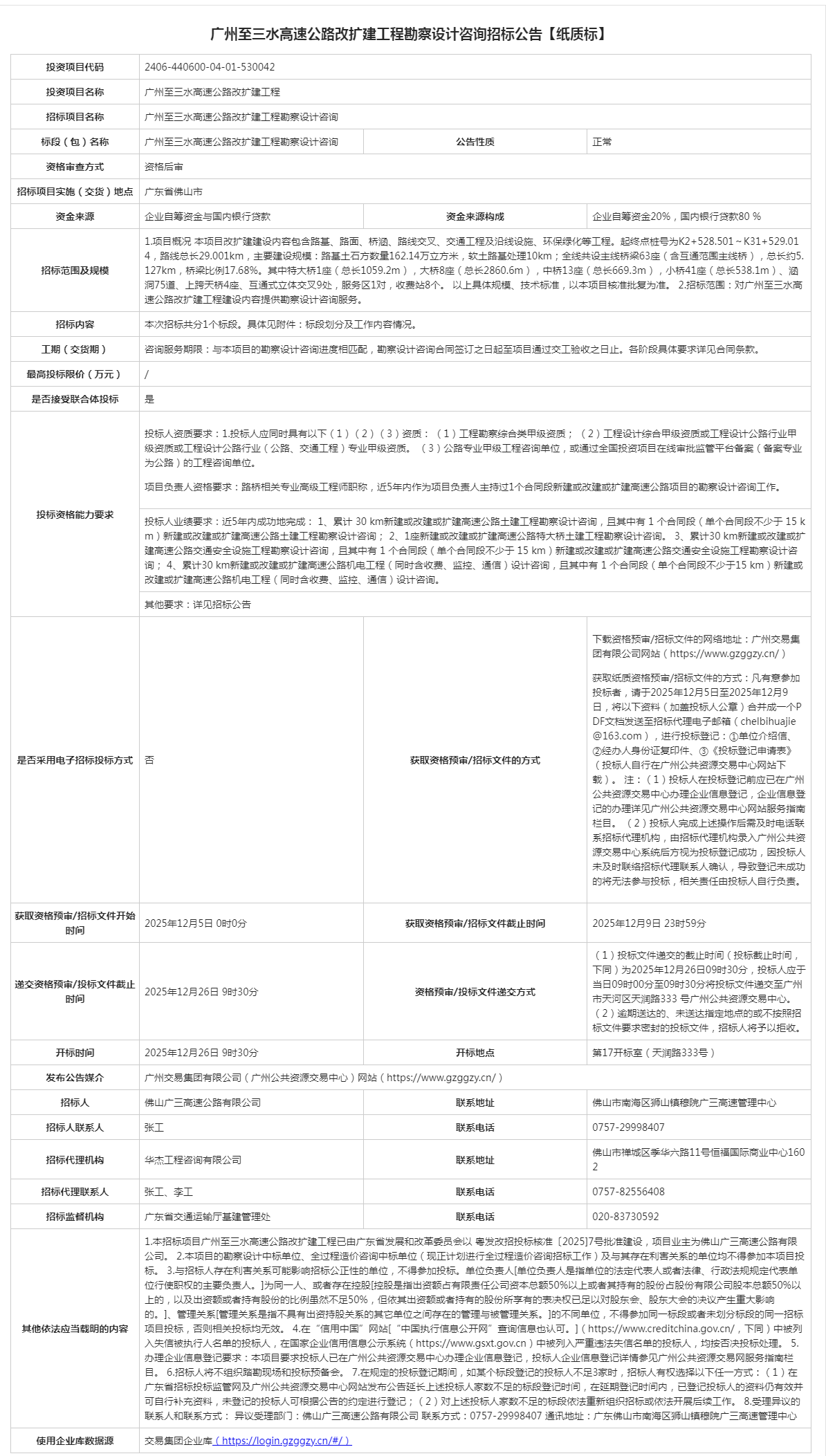 广州至三水高速公路改扩建工程勘察设计咨询招标公告