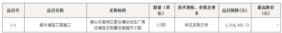 佛山市高明区更合镇合创生厂周边道路及附属设施提升工程竞争性磋商公告