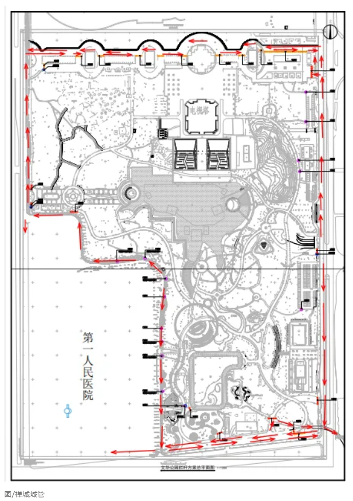 公园将在各大出入口设置固定物理阻隔设施,同时在季华隧道上盖东西两侧、东广场(彩虹路口)、西广场(区政府对面)、两园互通人行天桥西侧、南广场尚书苑门口等位置,设置专属无障碍通道,方便轮椅、婴儿车通行。电动自行车车主可选择季华隧道上盖广场北侧东西走向通道,或文华公园周边市政道路慢行道等便捷路线,绕行公园禁行区域。