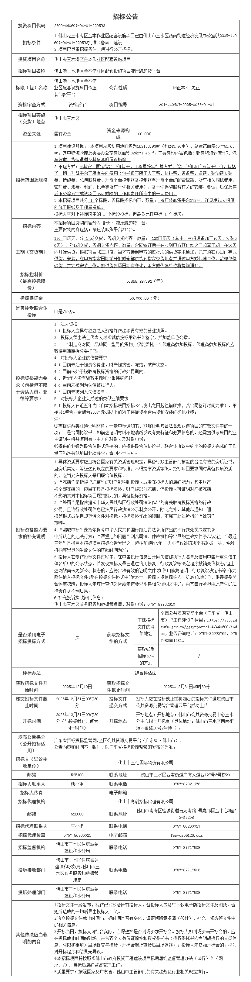佛山港三水港区金本作业区配套设施项目液压装卸货平台招标公告