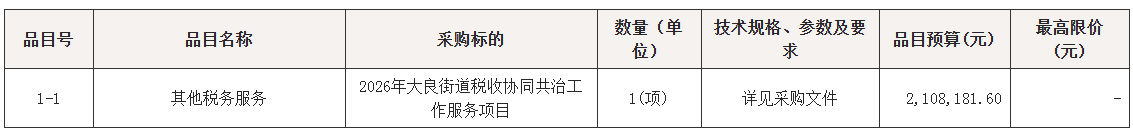 采购包1(2026年大良街道税收协同共治工作服务项目):