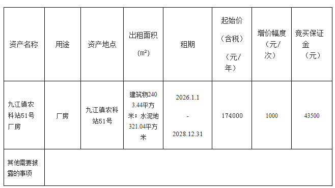 3.招/出租人:佛山市南海区九江镇镇有资产管理有限公司