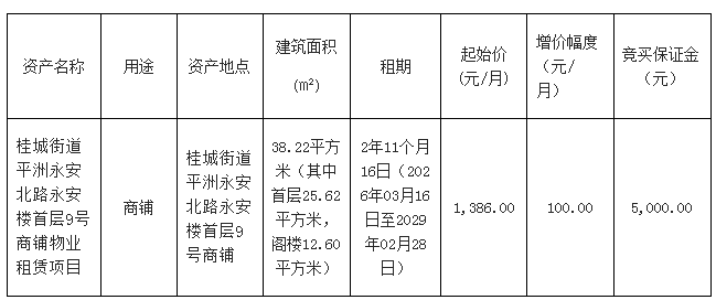 概述:租金收取方式:租金采用先交付后使用的方式,其中2026年1月10日前向甲方一次性支付竞得价的50%;2027年1月10日前完成余下50%款项的支付(具体金额以竞得价为准)......