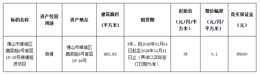 4.产权证照情况:有产权证照(竞买人应充分考虑其风险,一经存入竞买保证金即表示承认、接受本项目的现状,愿意按约定支付租赁价款和遵守租赁合同的约定)。