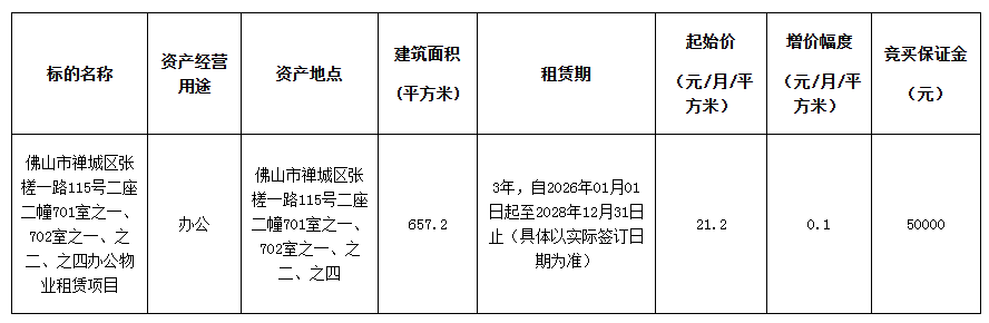 4.产权证照情况:有产权证照(竞买人应充分考虑其风险,一经存入竞买保证金即表示承认、接受本项目的现状,愿意按约定支付租赁价款和遵守租赁合同的约定)。