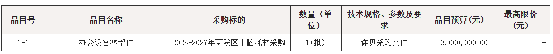 项目名称:2025-2027年两院区电脑耗材采购(二次)