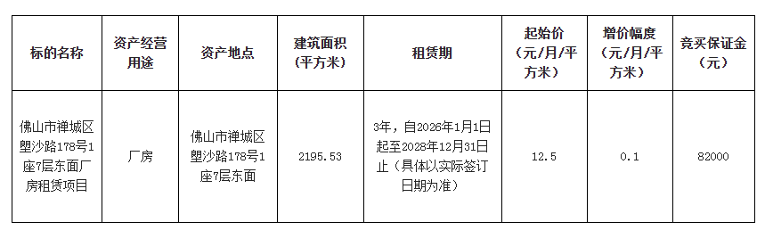 7.优先承租/购买权情况:佛山市金绵制衣有限公司为本项目优先承租权权利人。