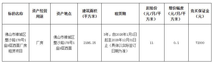 佛山市槎湾路以西、佛西路北侧环卫处侧东边1号厂房等租赁项目