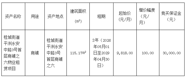 南海桂城街道平洲永安中路3号首层商铺之六物业租赁项目