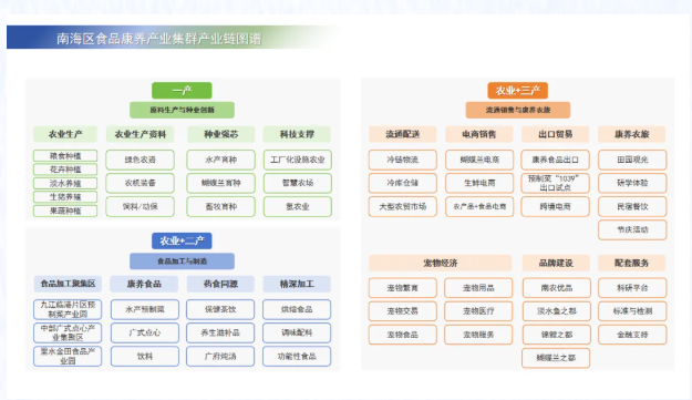 近年来,南海区以“百千万工程”实施、环两江先行区建设为引领,以工业化思维推动高水平农业“接二连三”发展,大力建设食品康养产业集群,围绕“农业+食品+文旅+康养+文化”,推动食品生产、加工、流通、餐饮、康养文旅等全链条集群发展;持续招商引资,推动康养食品产业提质扩容。