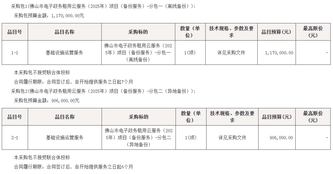 佛山市电子政务租用云服务(2025年)项目(备份服务)招标公告