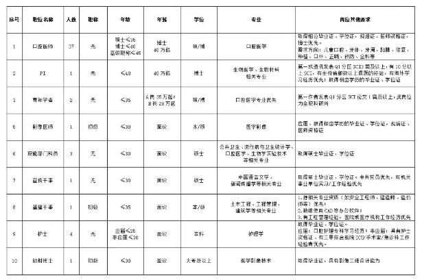 (四)口腔医学博士长期招聘,其他岗位招满即止。