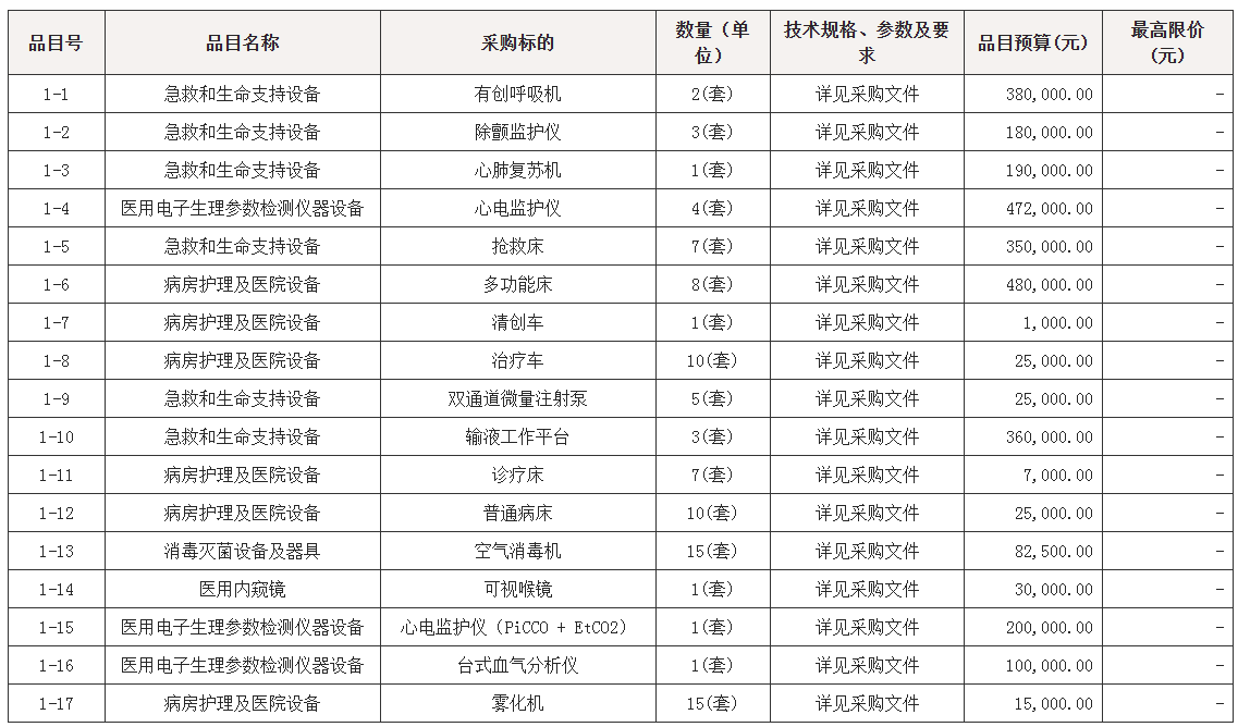 广州中医药大学顺德医院采购急诊科设备一批项目招标公告