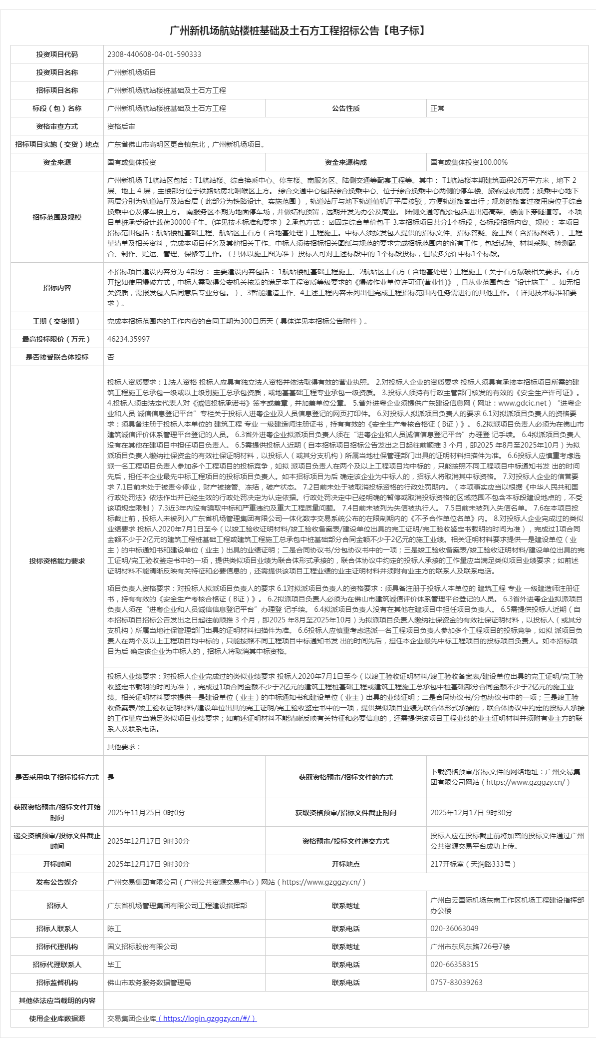 广州新机场项目_广州新机场工程超前钻项目招标公告