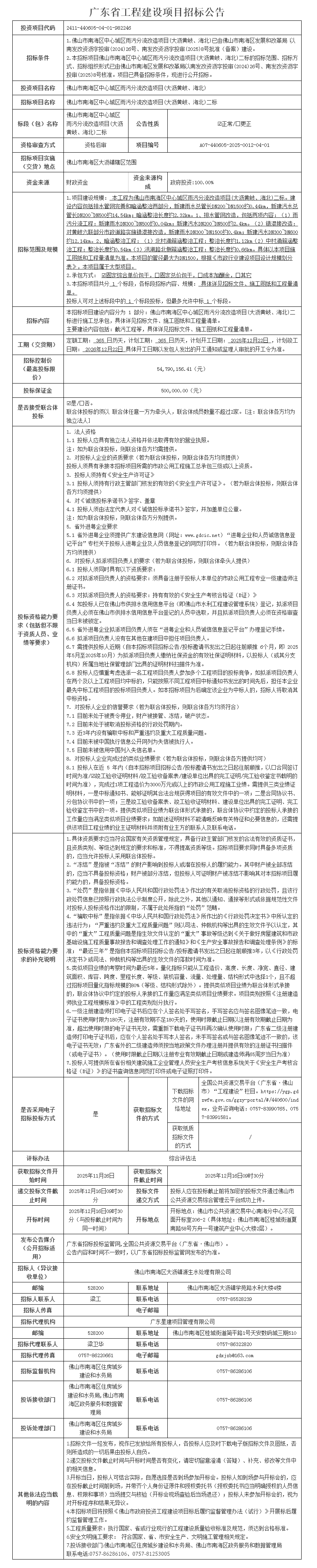 佛山市南海区中心城区雨污分流改造项目(大沥黄岐、海北)四标招标公告