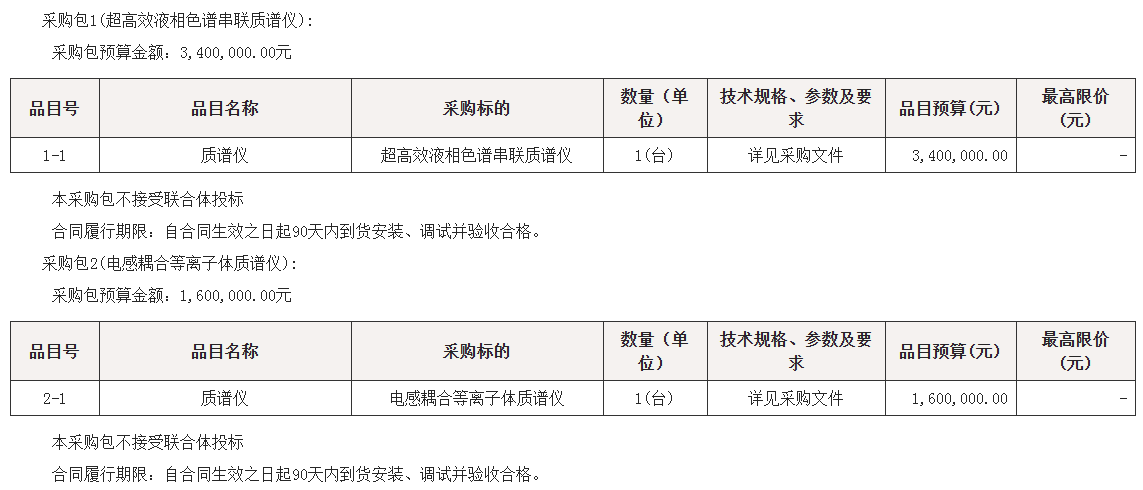 采购包1(超高效液相色谱串联质谱仪)特定资格要求如下: