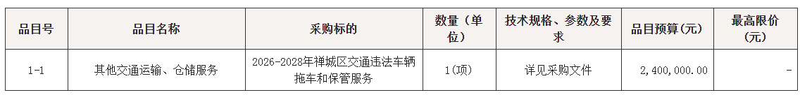 采购包1(2026-2028年禅城区交通违法车辆拖车和保管服务):