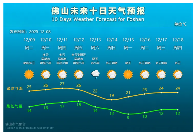 佛山最低气温或将跌破10℃